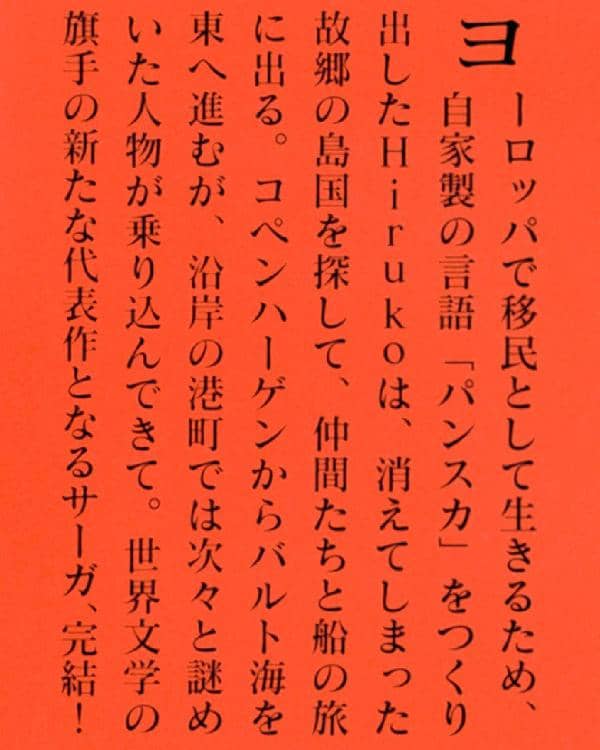 世界文学の旗手が紡ぐ、初の連作長篇三部作、完結!響きあう言葉とともに地球を旅する仲間たちの行方は−−。国境を越えて人と人をつなぐ、新しい時代の神話ヨーロッパで移民として生きるため、自家製の言語「パンスカ」をつくり出したHirukoは、消えてしまった故郷の島国を探して、仲間たちと共に船の旅に出る。一行を乗せた船はコペンハーゲンからバルト海を東へ進むが、沿岸の港町では次々と謎めいた人物が乗り込んできて−−。言葉で結びついた仲間たちの、時空を超えた出会いと冒険を描く、多和田葉子の新たな代表作。『地球にちりばめられて』『星に仄めかされて』に続くサーガ、ついに完結!