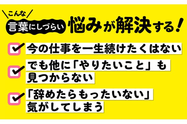 「つぶしが効くキャリア」に潰されないための人生設計法。一度でも会社を辞めたくなったら読む本。今の仕事を一生続けたくはない。でも他に「やりたいこと」も見つからない。「辞めたらもったいない」気がしてしまう。その言葉にできないモヤモヤに、答えを出す!人生の主導権を取り戻す方法。 |