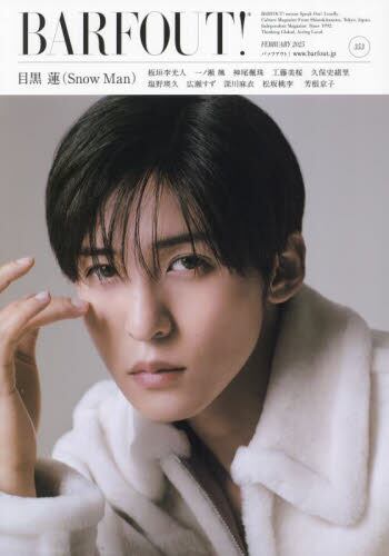 CULTURE MAGAZINE FROM SHIMOKITAZAWA, TOKYOBARFOUT! バァフアウト! 2025年2月号 FEBRUARY 2025 VOLUME 353FRONT COVER STORY目黒 蓮(Snow Man) REN MEGURO 表紙+12ページBACK COVER STORY広瀬すず SUZU HIROSE 12ページFILM松坂桃李 TORI MATSUZAKA 8ページ芳根京子 KYOKO YOSHINE 6ページ神尾楓珠 FUJU KAMIO 6ページ板垣李光人 RIHITO ITAGAKI 6ページ深川麻衣 MAI FUKAGAWA モノクロ6ページ久保史緒里 SHIORI KUBO モノクロ4ページDRAMA塩野瑛久 AKIHISA SHIONO 4ページ一ノ瀬 颯 HAYATE ICHINOSE モノクロ4ページ工藤美桜 MIO KUDO モノクロ4ページNEW安野 澄 YURA ANNO藤堂日向 HINATA TODOSERIALIZATIONPENTAXフィルム・プロジェクト部日誌 vol10 Guest鈴木 仁 JIN SUZUKI柚希礼音 REON YUZUKI堀田 茜&山崎二郎 AKANE HOTTA & JIRO YAMAZAKI佐久間由衣 YUI SAKUMA 尾崎世界観(クリープハイプ) OZAKISEKAIKAN神田莉緒香 Guest 祷 キララ RIOKA KANDA Guest KILALA INORI※12月19日現在での決定企画です