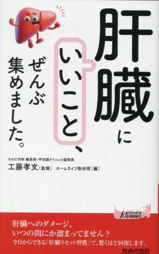 ◎肝臓を元気にしてくれるのは、シジミよりシメジに軍配が上がる!?◎やせてるのに脂肪肝!? 「隠れ脂肪肝」を防ぐ生活習慣とは◎食べてすぐ寝ると牛になる? いえいえ、肝臓には良いことだらけ◎プロテインブームの落とし穴…肝臓の疲弊させないたんぱく質の摂り方◎寝ても疲れが取れない…それ、肝機能が低下しているサインです◎お酒の“早飲み”は厳禁! この飲み方なら、肝臓に負担をかけない◎多少数値が悪くても、2週間の断酒で中学生の肝臓に若返る!◎買い物するとき、食品成分表を確認する人は、肝臓を痛めない◎疲れがたまっているときは、肝臓がある位置にカイロを貼る などさまざま側面から肝臓にいいことを紹介します。