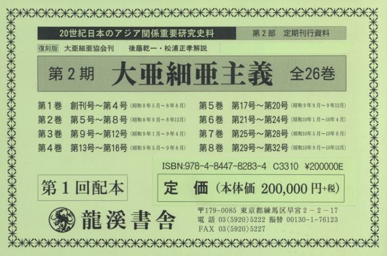 復刻版 大亜細亜主義 第2期 1配全8巻