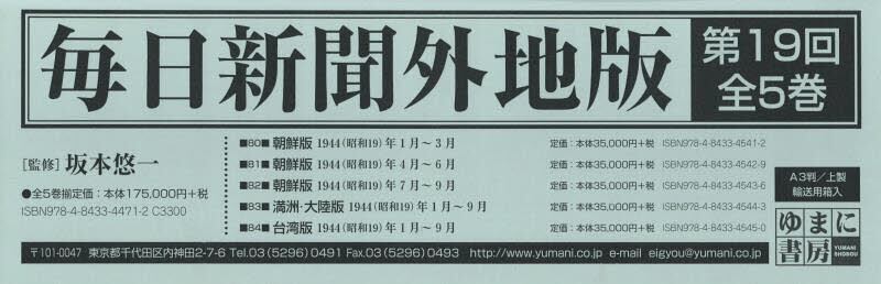 毎日新聞外地版 復刻 第19回配本 5巻セット
