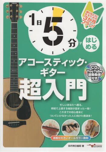忙しい方にぴったりのアコースティックギター超初心者向け教則本!手軽に時短しながら効率的に上達する秘訣が満載!1日5分ほどでできる練習メニューが3か月分大きな譜面で掲載され、内容が簡単に理解できるため、初心者の方でも安心して学べる!オールカラーで見やすいレイアウトによりやるべき練習に集中でき、全ページ対応のレッスン動画が見られる。忙しい日常においても、ギターを始めたいと思っている方にはぜひおすすめの一冊! |