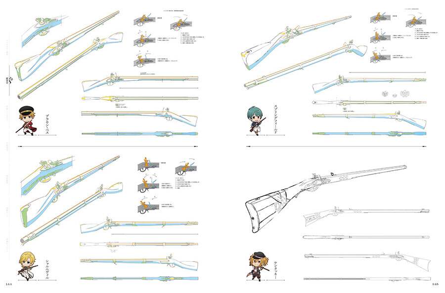 アニメ『千銃士』を作り上げたキャラクター設定、銃設定、小物設定、美術設定、美術ボード、そして貴銃士たちのレア原画も収録!古銃34キャラクター、現代銃3キャラクターの華麗なる勇姿がここに!  |