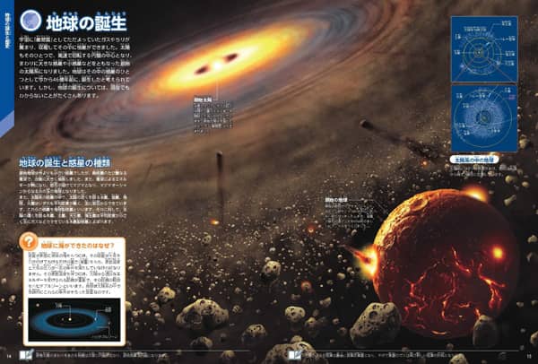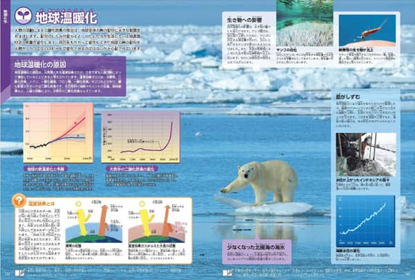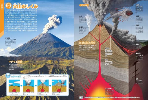 火山や気候などのさまざまな地球の自然現象やメカニズムだけでなく、宝石や世界各地の絶景など地球が作り出す美しいものまで、地球への興味が増す情報が満載。近年話題の環境問題も多数紹介し、地球の今がよくわかります。